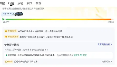 如图所示,在当前的车况下,该车的市场行情大致在30.63万至37.74万之间。需要注意的是,具体的成交价会受到车辆状况等因素的重要影响。实际定价将根据车辆的保养情况、行驶里程及使用年数等具体条件而有所不同。