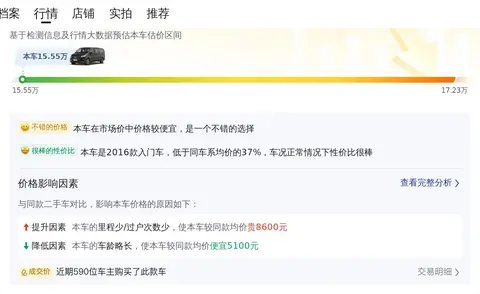 对于二手车来说,价格受很多因素影响,比如车龄、里程、过户次数等,一般来说,车龄越小、里程越小、过户次数越少,则价格越高,反之价格越低。本文中介绍的这辆车,与同款比价部分的大数据分析结果对比,价格适中,这与车辆的车龄、里程、过户次数有着直接关系。