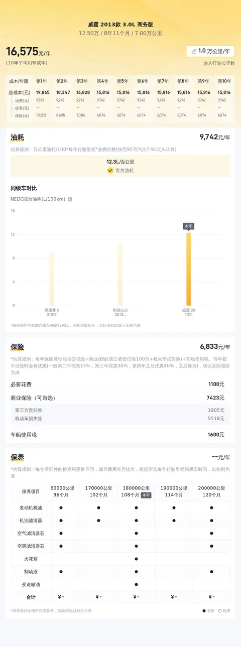 今天我们要介绍的这款车就是威霆 2013款 3.0L 商务版,新车含税价为42.61万,现在的二手车报价是12.5万,2016年2月首次上牌,在此期间过户1次。