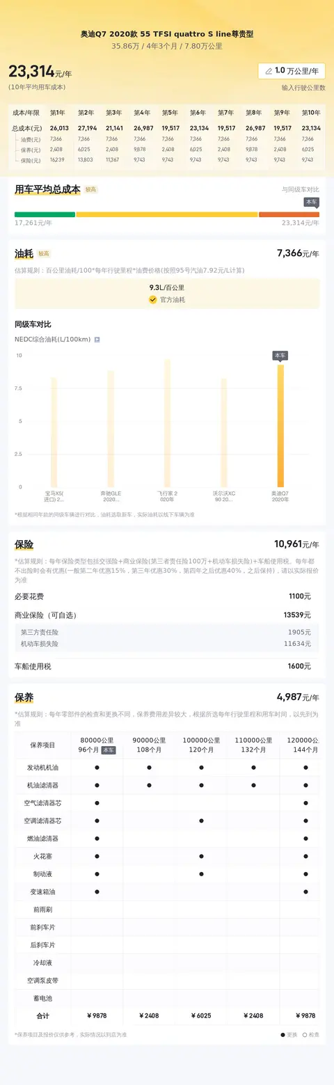 除了呈现给您二手车市场的价格趋势,我们也将展示这款车在日常使用中的用车成本,以供您全面考量长期持有的可行性。需铭记的是,车辆使用过程中的开支会因个别车主的使用习惯及维护选择等因素有所变动。接下来,我们将透过一系列图像,向您展现该车型在日常使用成本方面的概况,包括但不限于油耗费用、保险费用及保养费用等。