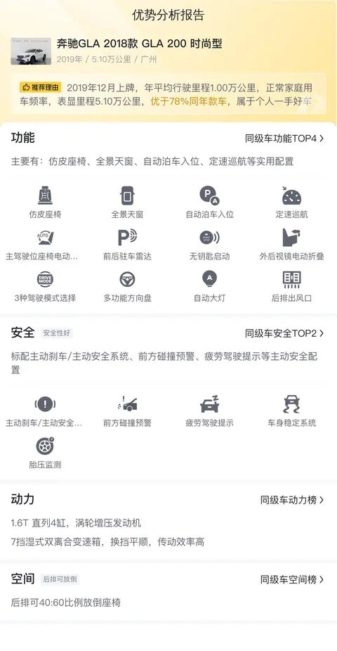 综合来说,这辆二手奔驰GLA 2018款 GLA 200 时尚型适合家用代步,外观漂亮,品牌响亮,品质可靠,而且价格合适,值得考虑。当然,具体还要您自己现场检验车况,满意了再购买。