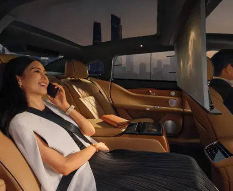 在隐私性设计方面,享界S9同样表现突出。车辆配备了全向电动遮阳帘、一键声盾模式等。其中,一键声盾模式基于HUAWEI SOUND的行业声场控制技术打造,能够自动识别并捕捉车内声音,实时对后排对话进行掩蔽处理。系统可以实时跟踪主驾头部的变动,主驾头枕音响会播放方向性声波,如柔和的流水声等。在隐私声盾模式下,后排乘客的对话信息隔离度可达90%以上,对话内容被100%掩蔽,确保隐私内容不会被前排人员听到。这一功能非常适用于商务用车场景,后排乘客可以安心进行商务谈话,无需担心重要内容被前排人员听到。