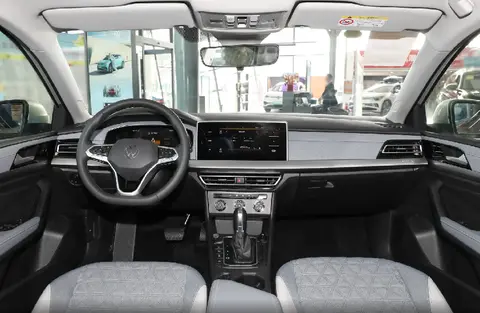 大众朗逸的内饰设计给人的感觉还是比较亲切的,机械换挡杆集成在中央扶手的前方,这在合资品牌车型中是很常见的布局手法,但前排储物空间的利用率也因此下降了不少,不如电子怀挡设计更美观和实用。仪表台采用软性面料贯穿包覆,靠近驾乘者的一端还应用了银色饰板点缀来提升内饰现代感,饰板右侧刻印“LAVIDA”车型标识,细节部位配以细密的缝线处理,提高了内饰的车型辨识度。
