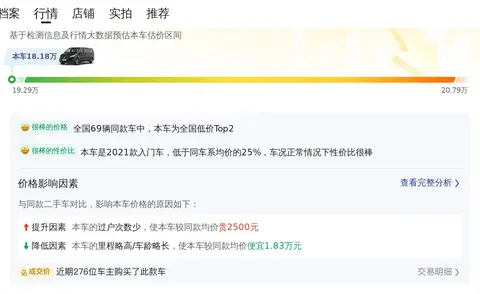 威霆 2021款 2.0T 精英版 7座的市场行情价是18.68万-23.08万,它的报价则是18.18万,所以报价低于市场行情,同时它的保值率较高。