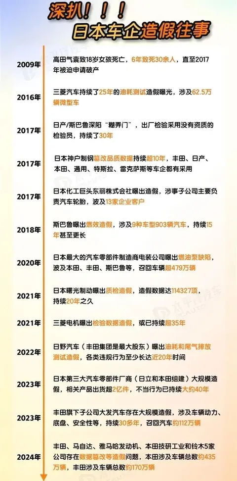 日系车质量神话正在经历前所未有的挑战。曾经以"开不坏"著称的日系品牌,近年来频频陷入质量危机。高田气囊事件导致全球数千万辆汽车召回,丰田、本田、日产等品牌无一幸免;神户制钢数据造假事件,暴露出日系车企供应链管理的重大漏洞;斯巴鲁质检造假事件,更是将日系车的质量神话彻底击碎。