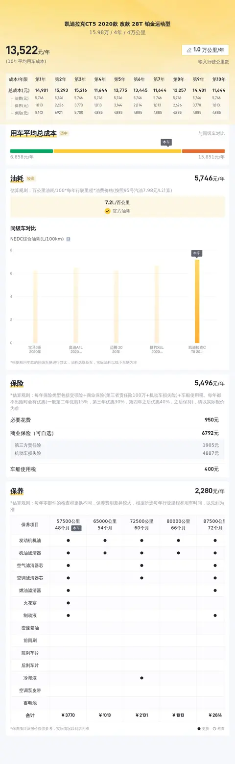 买车容易养车难,大家买车的时候不光要考虑买车的费用,还要考虑用车的成本。根据懂车帝的数据,这款车型的年均综合用车成本大概在每年1.4万元左右。当然跟用车习惯也有直接关系。