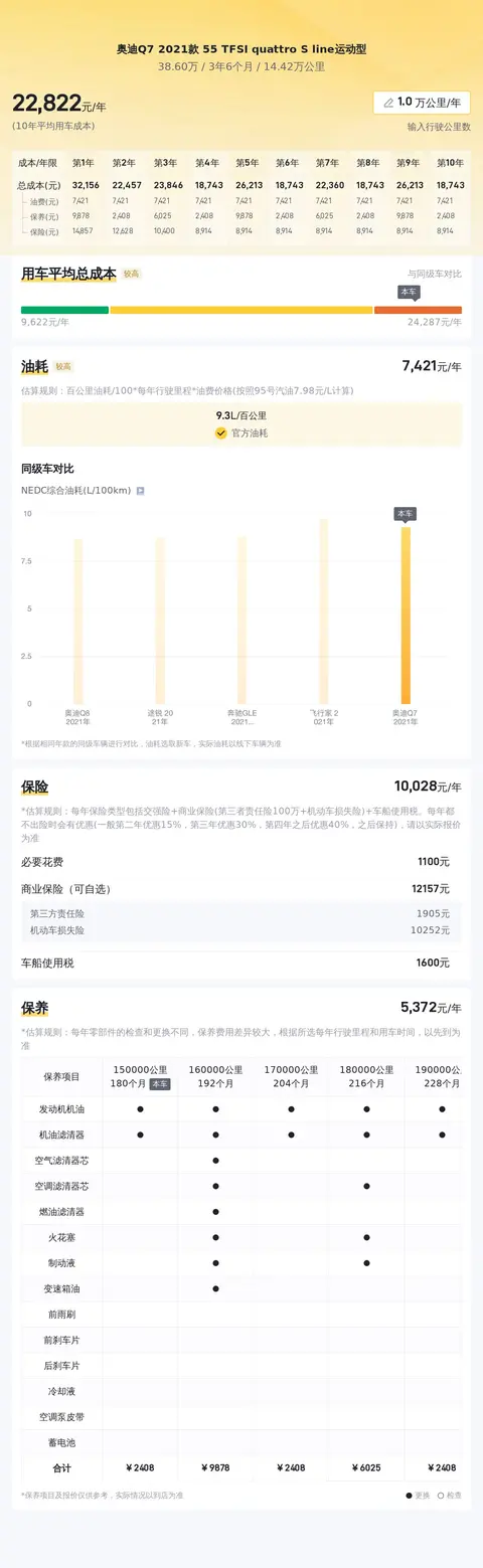 综上所述的新车含税价、用车成本、市场行情、优势分析、同款比价等数据仅供参考。在配置部分,因为二手车非标品,车辆可能会存在配置改装的情况,具体车况信息需要线下结合车辆实际情况进行综合参考。