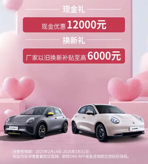 [懂车帝原创 产品] 日前,我们从欧拉汽车官方获悉,即日起至3月31日,购买欧拉好猫(图片|配置|询价)可享现金优惠1.2万元,同时还有厂家以旧换新补贴至高6000元。作为参考,现款好猫指导价区间10.58万-13.58万元。