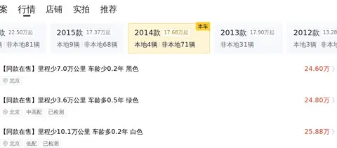 发现 2014款 3.0 SDV6 HSE 柴油版,新车含税价为96.91万,现在的二手车报价是20.88万,2015年1月首次上牌,在此期间过户2次。