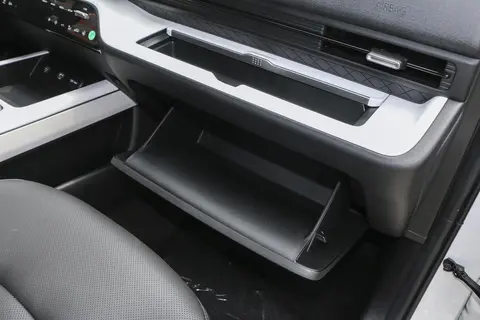 内饰方面,中控台布局新颖,采用了一体式连屏和纵向布局的空调出风口,并应用了银色饰板来提升质感,各种功能操作起来顺手,储物空间也比较多,真皮多功能方向盘握感舒服,但仔细观察就会发现,车内的硬质塑料部件还是挺多的,新车气味有点大,建议多开窗通风,而且这个版本的液晶仪表是4英寸,屏幕周围黑边多,而12.3英寸中控屏只是些基础的功能,像语音识别控制、车联网、OTA升级等都需要加钱选装。