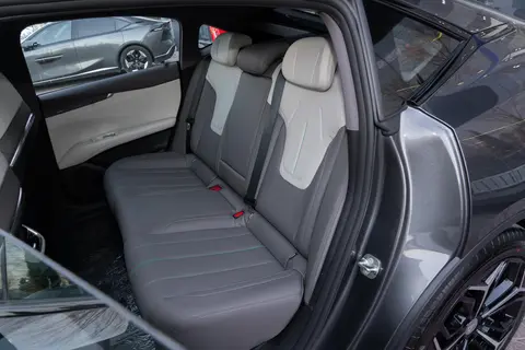 车身侧面,采用了无框车门设计,也有尺寸较大的多辐双拼色轮毂。车尾,贯穿式LED尾灯设计,加上可电升降尾翼,让它的车尾标识较高。其中,在看不见的地方,纯电车型在以相同的车头设计的基础上,在内部有AGS主动进气格栅,在散热效果上做出区分。