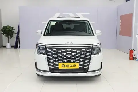 车头、尾部倒是比较有辨识度,前脸使用国风龙鳞设计,倒梯的大尺寸格栅几乎铺满了整个前脸,其中嵌有对称的龙鳞镀铬,格栅两侧以及上方还带有方圆的LED大灯和贯穿的日行车灯,车尾同样配备了光影流动的凤羽灯,前后灯源组件点亮后,既产生了前后辉映的视觉效果,也同时给到了一定的警示作用。