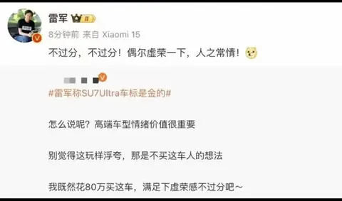 雷总历来是妙语连珠的,他说这是为了满足高端用户“偶尔虚荣一下”的个性需求。