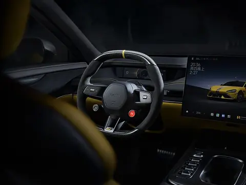 小米SU7 Ultra内饰更具运动感,座椅、方向盘设计均进行升级。小米SU7 Ultra配备全新运动座椅,座椅主动侧翼支撑功能大幅升级,响应速度更快,支撑面积更大,激烈驾驶时提供更好的身体支撑;座椅靠背新增专属赛道刺绣条纹和Ultra刺绣徽标,视觉效果更加运动。小米SU7 Ultra方向盘进行了全新设计,采用上下平面的赛车风格,材质升级为碳纤维,手握处包覆Alcantara®️超细纤维面料,手不容易打滑;方向盘12点方向加入黄色回中标识,激烈操控时更好地帮助判断方向盘指向。全新设计搭配黄色安全带和方向盘红色Boost按键,让小米SU7 Ultra内饰战斗气息拉满。