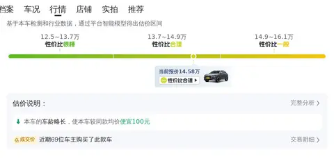 根据大数据预估显示,这辆奥迪Q3 2021款 35 TFSI 进享人生版的二手车价格在14.52万至17.74万之间。具体的售价会受到车辆状况等因素的影响,而本车目前的售价为14.58万,处于较低的一个水平,是一个不错的选择。