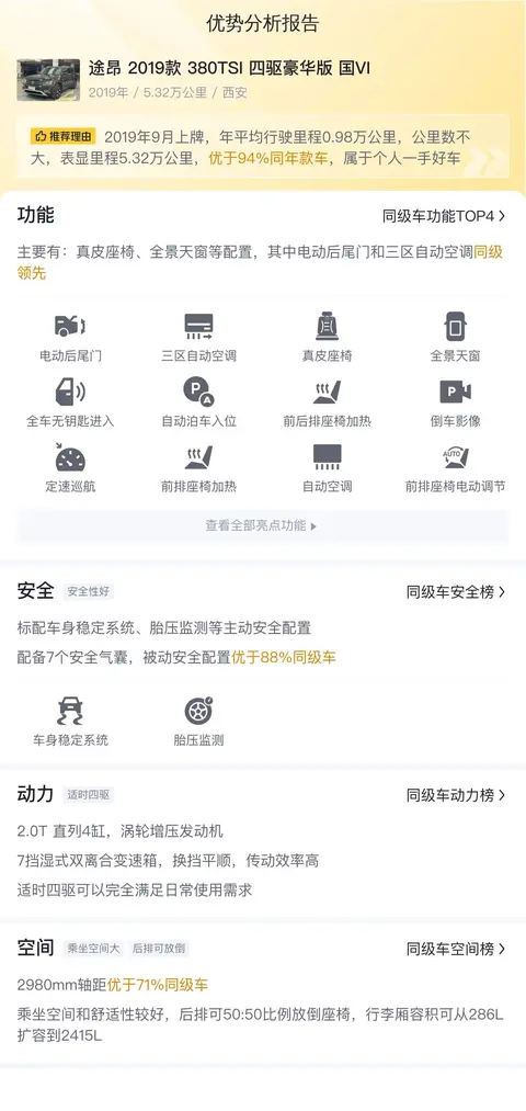 具体版本:途昂 2019款 380TSI 四驱豪华版 国VI