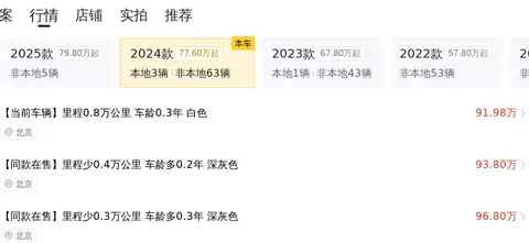 根据懂车帝的数据,这款车型的市场行情在88.98万至106.68万之间。具体的售价则受到车辆状况、里程数、车龄和过户次数等因素的影响。本车目前售价91.98万,预计再行驶2年后可卖68万,约折价25.1%。考虑到其车况良好、里程数较少且无过户记录,这一价格在市场中属于较为合理的选择。
