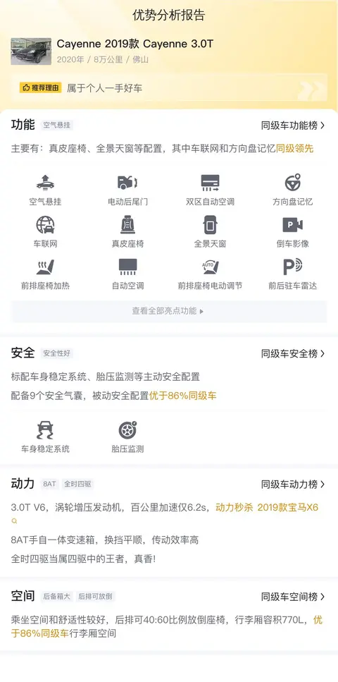 综上所述的新车含税价、用车成本、市场行情、优势分析、同款比价等数据仅供参考。在配置部分,因为二手车非标品,车辆可能会存在配置改装的情况,具体车况信息需要线下结合车辆实际情况进行综合参考。