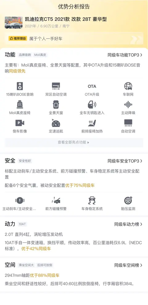 综上所述的新车含税价、用车成本、市场行情、优势分析、同款比价等数据仅供参考。在配置部分,因为二手车非标品,车辆可能会存在配置改装的情况,具体车况信息需要线下结合车辆实际情况进行综合参考。