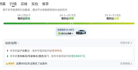 根据懂车帝的数据,目前这款车型的二手车价格区间在14.32万元至17.28万元之间。具体的价格因车辆的车龄、里程、车况以及养护状况等不同情况而有所差异。我们关注的这辆车价格在14.88万元,价格适中,但考虑到其丰富的配置和良好的车况,这款车的性价比还是很突出的,是一个不错的选择。