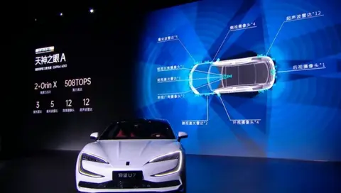 智能化上,仰望U7全系均搭载英伟达双Orin-X芯片,拥有3颗激光雷达在内32颗传感器的「天神之眼-A」系统,交付时即支持端到端全国无图智驾领航能力。