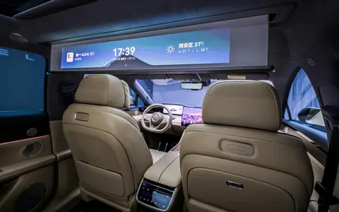 我们平时上车前在玩手机,上车后只需碰一碰,手机上的通话、导航、影视甚至是游戏就能双向无缝流转至超级桌面2.0上了,一个账号,随时随地精彩继续。商务会议也可以搬到旅途中,除了32英寸的激光巨幕投影系统2.0之外,车内的摄像头、麦克风和隐私遮阳帘都可以一键联动,舒适的会客厅秒变远程董事会。