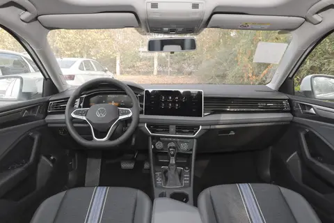 速腾的内饰采用经典的 T 型布局,一切都以实用为出发点,中控台上也有大面积采用软质包裹,触感细腻,搭配银色装饰条,提升了内饰的层次感和质感。不过整体的档次感和科技感营造上相比领克03(逛导购)还是存在一定的差距。