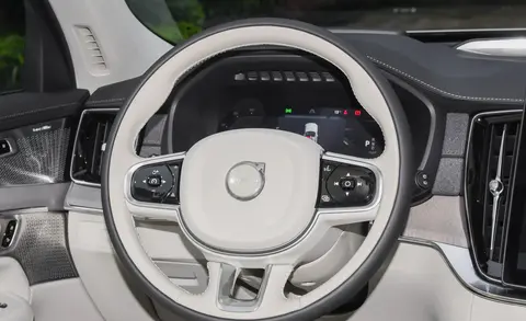 新款XC90内饰看齐品牌旗舰EX90,保留了沃尔沃一贯的极简设计,但科技感明显提升。中控屏从原来的嵌入式变为更具视觉冲击力的悬浮式大屏,并集成更多新功能,支持OTA升级,操作逻辑也更现代,方向盘升级为新样式三幅式,全液晶仪表盘得到了保留,中控区域依旧保留部分实体按键和旋钮,使用起来更加直观,不盲操作。值得一提的是,新车继续搭载辨识度极高的水晶电子档把,豪华感和辨识度拉满。