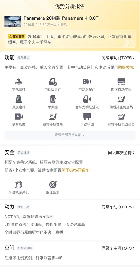 选择哪款车,实际上就是在选择一种生活态度和价值观。Panamera 2014款 Panamera 4 3.0T以其卓越的动力性能、豪华舒适的驾乘体验和先进的安全配置,为追求高品质生活的消费者提供了一个理想的选择。如果您对二手车市场有所了解,就会知道每一辆二手车都有其独特的故事和个性。而今天这辆银灰色的Panamera,或许正是您一直在寻找的那个“特别的存在”。