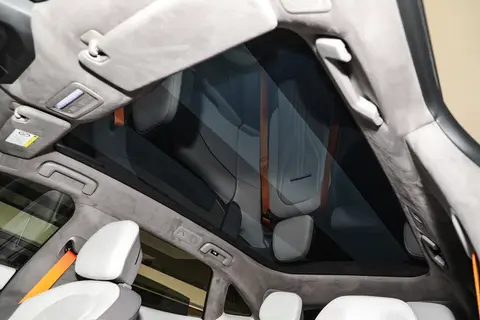 坐进车内,猎装的设计风格同样延续到了内饰上,型面平整且大面积由皮革材料所覆盖,门板和操控台还由巧妙的曲面衔接在一起,并且有双色拼接处理,让座舱内也呈现出锐进的激烈氛围,岛台做了上下两层处理,上层可以用于手机无线充电,下层则是内凹式的双杯架,并由氛围灯环绕,具有满满的仪式感,值得一提的是头顶上还有1.73平方米的贯穿式全景天幕,并且带有新一代EC光感变色功能,具有10挡明暗变化可供调节,既能营造明亮通透的车内环境也能隔绝99%以上的紫外线。