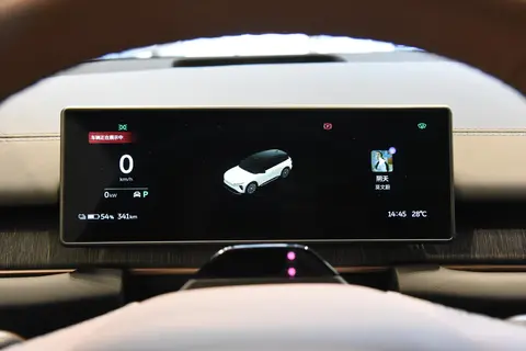在内饰设计上,中控台采纳了连贯式横向布局,搭配隐蔽式空调出风系统,营造了车内更为整洁的视觉体验。多功能方向盘采用皮质覆盖,并搭载了记忆功能,能够依据驾驶员的使用习惯完成定制化配置。取消了车内的传统物理按键,以12.8英寸的超大中控触摸屏和10.2英寸的全数字仪表盘取而代之,同时还装备了9.3寸HUD抬头显示功能。该中控屏装备了骁龙8295处理器及Banyan榕系列智能操作系统,具备人脸识别和5G网络连接等多项实用功能,在中控屏下方,集成了电子换挡、无线手机充电区域以及方便实用的双杯架。NOMI助手能够精确解读并执行包括连续性命令和普通话与方言结合的复杂指令,从而为驾驶者带来舒适的智能化驾驶体验。此外,该车在后排座位区域安装了一台6.6英寸的HDR规格多功能显示屏,使得后排乘坐者能够自主控制空调温度、调整座椅位置以及播放媒体内容等,增强了乘坐舒适度和操作的便利性。
