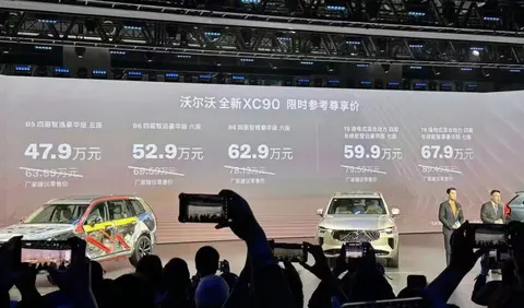 4月16日,新款沃尔沃XC90(图片|配置|询价)正式上市,新车共推出5款车型,售价区间为63.89-89.49万元,限时参考尊享价区间为47.9-67.9万元。