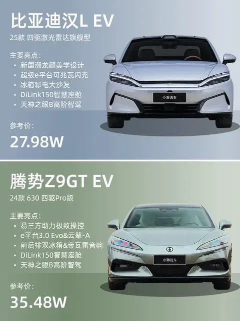 关键是,这个价位,它还顺带手,把自己人——腾势Z9 GT给打了个措手不及。Z9 GT是什么?三电机,猎装设计,30万+走高端路线。结果现在汉L EV一个家用轿车,动力更猛、配置几乎一样、价格还便宜一大截。你要是Z9 GT准车主,你啥心情?