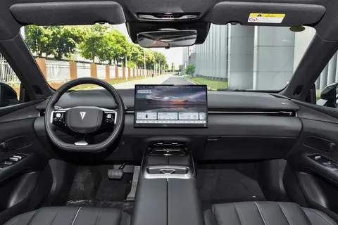 内饰方面,深蓝L07采用无仪表盘信息交互方案,提供AR-HUD抬头显示系统及15.6英寸悬浮式中控屏,空调出风口采用横向贯穿隐藏式设计,搭配高通骁龙8155座舱芯片。