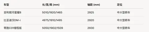 首先来看车身,星耀 8 长宽高为 5018×1918×1480mm,轴距 2928mm,和比亚迪汉 DM 以及零跑 C01 相当,作为一款 5 米长的轿车,搭配溜背的造型,整体空间表现符合 C 级车的定位,同时整车的风阻系数仅为 0.25,在同级中还是比较低的。