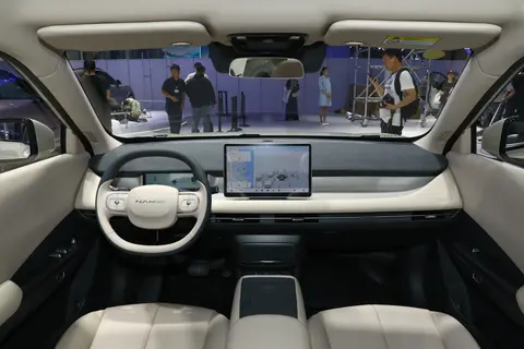 纳米 06 的内饰延续了简洁现代的风格。平底多功能方向盘握感舒适,操控灵活,各种功能按键布局合理,方便驾驶者操作。电子式怀挡设计不仅节省空间,还充满了科技感,符合电动车的现代气质。