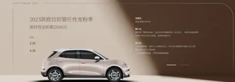 在3月19日,欧拉汽车官方宣布开启限时优惠,现金优惠2.2万元。这次优惠活动针对的是2023款欧拉好猫,活动时间时间从3月20日开始到4月20日结束。这次优惠活动可以说是诚意满满,力度也是相当大。