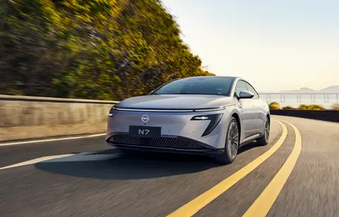 日产 N7 其实早就上市了,这款车一改传统合资“漫不经心”的态度,在设计和智能化表现上都下了不少功夫。外观方面,这款车采用了封闭式前脸和分体式大灯组,上方是贯穿式 LED 灯带,两侧是倒 L 形的灯组设计,风格上可以说是很“新能源”了。