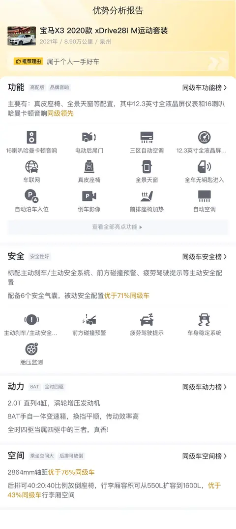 综上所述的新车含税价、用车成本、市场行情、优势分析、同款比价等数据仅供参考。在配置部分,因为二手车非标品,车辆可能会存在配置改装的情况,具体车况信息需要线下结合车辆实际情况进行综合参考。