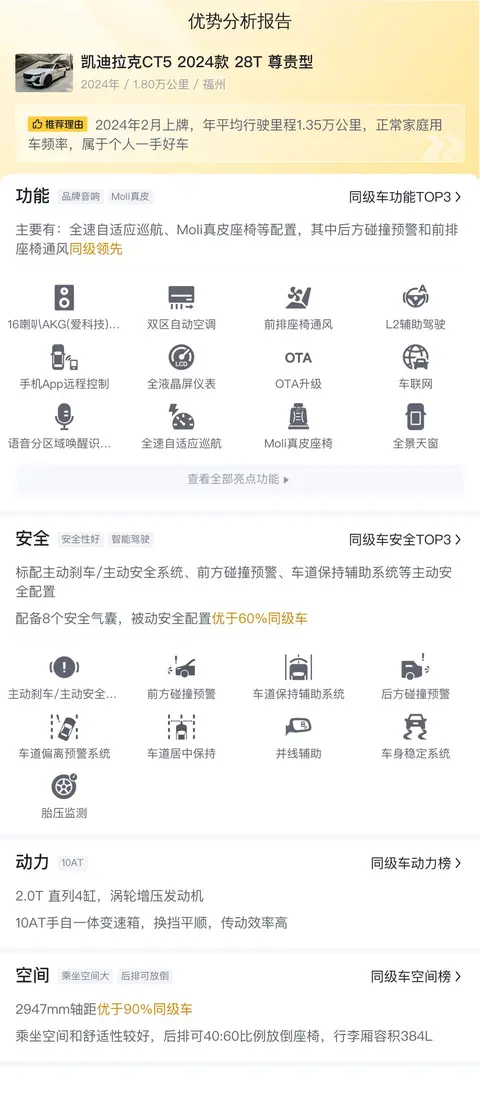 综上所述的新车含税价、用车成本、市场行情、优势分析、同款比价等数据仅供参考。在配置部分,因为二手车非标品,车辆可能会存在配置改装的情况,具体车况信息需要线下结合车辆实际情况进行综合参考。