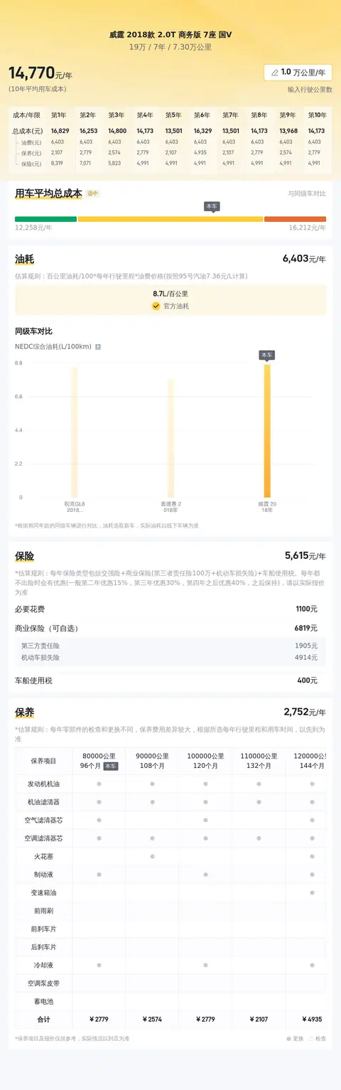 在用车成本方面,根据估算,这辆车的年均综合用车成本约为1.5万元左右。需要注意的是,实际费用支出可能会因个人用车习惯、地区消费水平等因素而有所差异。