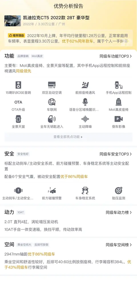 综上所述的新车含税价、用车成本、市场行情、优势分析、同款比价等数据仅供参考。在配置部分,因为二手车非标品,车辆可能会存在配置改装的情况,具体车况信息需要线下结合车辆实际情况进行综合参考。