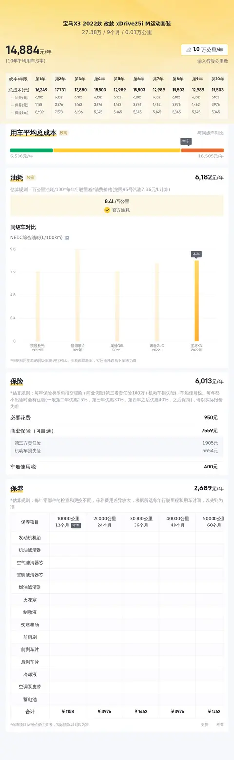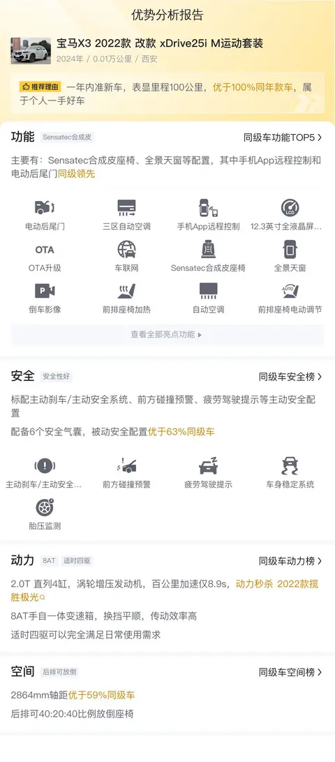 综上所述的新车含税价、用车成本、市场行情、优势分析、同款比价等数据仅供参考。在配置部分,因为二手车非标品,车辆可能会存在配置改装的情况,具体车况信息需要线下结合车辆实际情况进行综合参考。