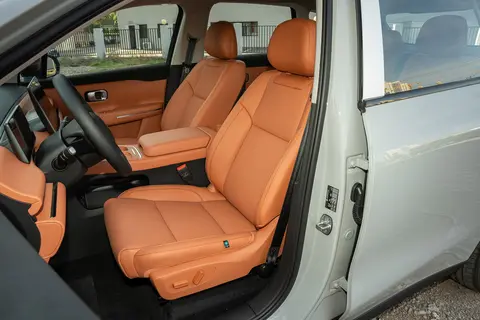 坐进车内,内饰给人的感觉就是科技感满满又不失温馨。中控台大量运用平直线条和圆角矩形设计,看起来特别工整、简约,还能减少孩子磕碰受伤的风险。双幅式平底方向盘握感舒适,10.25英寸液晶仪表盘和14.6英寸悬浮式中控屏显示清晰,操作也很流畅。电子怀挡换挡机构用起来很顺手,还节省了不少空间。