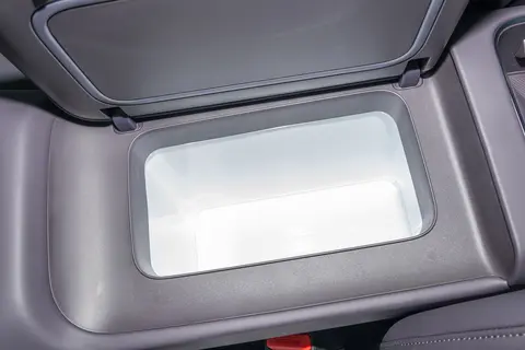 内饰方面,2026款零跑C16继续配有14.6英寸2.5K悬浮式中控屏,以及高通8295芯片,应用最新Leap 4.0 Plus车机系统,新增3D车模、语音增强、App应用等功能。副仪表台区域提供手机无线充电、杯架等,顶配车型的中央扶手箱内新增容积为8.1升的车载冰箱。