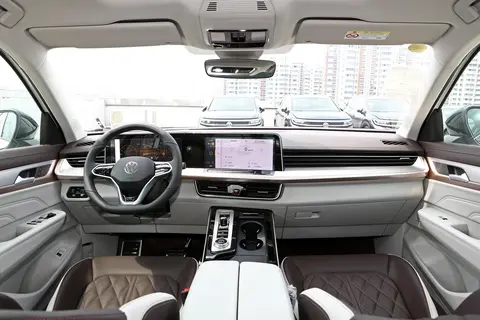 内饰方面,揽巡的内饰设计同样令人印象深刻。小编认为揽巡做的还是不错的,内饰各种板件接缝整齐,摸上去非常的扎实,虽然第一眼看上去不算豪华,但细节和品位经得起细细考究。驾驶舱内配备了真皮多功能方向盘,支持四项手动调节,北方地区的消费者还可以选择加热功能。换挡拨片和电子挡把的设计,进一步提升了驾驶的便利性。中控台采用了双联屏设计,10.25英寸的全液晶仪表和12英寸的中控大屏,标配了卫星导航系统,支持手机互联映射和OTA升级,通过语音助手“你好大众”即可唤醒,使得行车过程中的操作更加便捷。前排还标配了手机无线充电板,最大充电功率为15W,车内共有4个充电接口,确保了全车乘客的充电需求。此外,车内还配备了9个音响,消费者还可以选择升级为14个哈曼卡顿音响,进一步提升音质体验。车内大量使用了软性材料,金属质感的镀铬条和亮光饰板的装饰,营造出了豪华的内饰氛围。