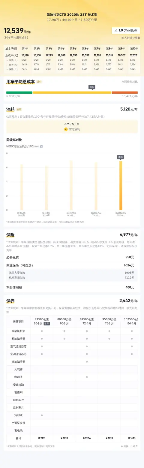在用车成本方面,我们将通过图片向您展示该车与其他同级别车型在使用成本上的对比情况。此外,我们还将为您提供一份详细的使用成本清单,帮助您更清楚地了解养护这款车所需的费用。