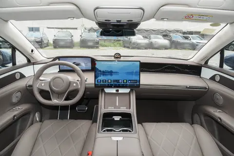 中控台中央是一块 35.4 英寸的超长彩色全液晶屏,这个屏幕可太震撼了,显示效果特别细腻,导航、娱乐、车辆信息等内容都能同时显示,就像把一个小电脑搬到了车上。副驾驶区域还有一块 15.6 英寸的高清触控屏,主副驾的屏幕还能联动,要是副驾的家人朋友想看电影、听音乐,直接在自己的屏幕上操作就行,互不干扰。