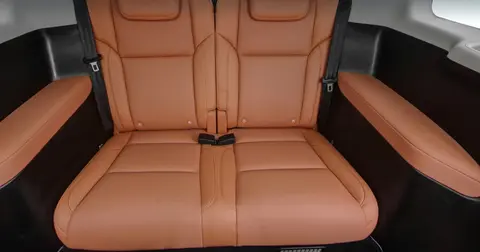 6 座版采用 2+2+2 的座椅布局,新增 Nappa 真皮材质包裹座椅和第一 / 二排座椅按摩功能。第二排座椅新增横向滑轨,中央通道最大宽度达到 190 毫米,方便老人和小孩进出第三排。而且第二排座椅靠背最大仰角从 145 度提升至 155 度,乘客可以更舒适地躺着休息。不过需要注意的是,第三排空间对于身材较高的成年人来说,长途乘坐可能略显局促,但短途应急或儿童乘坐完全没问题。