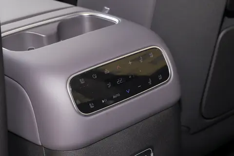 座椅方面,五座版可谓下足了“血本”。座椅布局采用“剧院式”阶梯设计,相较于6座版,进一步优化了腿部与头部空间,967mm的头部空间,就算是身高185cm的壮汉,长途乘坐也不会觉得压抑。第二排座椅具备电动调节功能,拥有140°大仰角设计,只需轻轻一按,就能一键切换至“大床模式”。想象一下,在长途旅行中,家人或朋友可以躺在上面美美地睡上一觉;周末户外露营时,将座椅放平,再铺上气垫和被子,瞬间变成一张舒适的“户外大床”。再配合后备厢观影模式,打开后备厢,连接投影仪,一家人围坐在一起,看着电影,享受惬意的休闲时光。而且,五座版标配Nappa真皮座椅,触感柔软细腻,全车10点按摩、通风、加热功能,让你在任何季节都能享受到舒适体验。开车累了,打开按摩功能,缓解疲劳;夏天怕热,通风功能迅速带走闷热;冬天怕冷,加热功能让你温暖如春。另外,三区独立空调与8.1L冷暖冰箱的配备,更是将车内的舒适感提升到了新高度。三区独立空调可以让前排驾驶者、副驾驶以及后排乘客,根据自己的需求调节温度,满足不同人的喜好;8.1L冷暖冰箱既能冷藏饮料、水果,保持新鲜口感,又能加热食物,在寒冷的冬天喝上一口热饮,别提多幸福了。